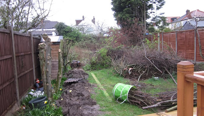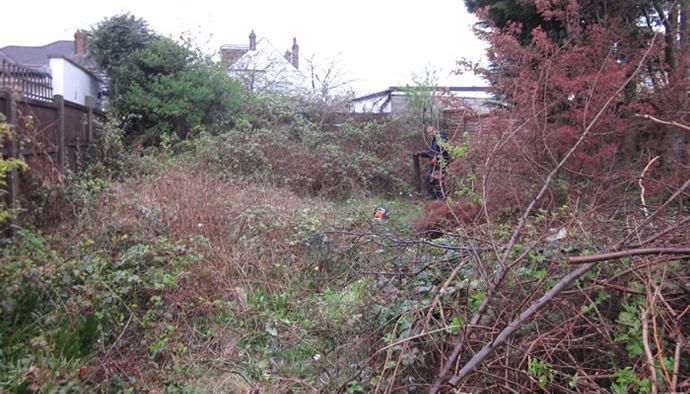 All overgrowth is cut down, tree stumps removed, derelict sheds taken down, and soil can be levelled. Rubbish is then bagged up and disposed of for you.