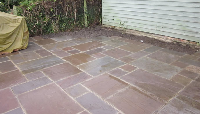 All our paving is laid on a mortar bed - a mix of sand and cement that sets hard to provide a firm base. We always point up our paving with a mortar mix to prevent weeds from growing between the cracks.
